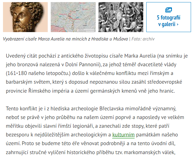 Fragment římského pancíře nalezený u PasohlávekZdroj: ČTK Autor: Václav ŠálekPřed stovkami let tudy pochodovala a sídlila tu Římská vojska, dnes je na místě Hradiska u Mušova zatím prázdná louka s několika informačními cedulemi. "Je to střed toho území, které okupovali. Bylo tu nejintenzivnější germánské osídlení," popsal archeolog z Archeologického ústavu akademie věd Balázs Komoróczy.